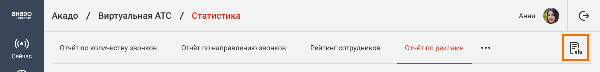 Вы можете экспортировать отчет по каждой рекламной кампании в формате xlsx. Экспорт в xlsx позволит провести более глубокий сравнительный анализ данных, используя собственные инструменты для аналитики. Комбинируйте отчет по рекламе с другими данными. Например, добавив столбец с расходами на рекламу, вы можете посчитать стоимость уникального звонка на рекламный номер. Чтобы скачать отчет в формате xlsx, кликните на иконку с подписью xls в правом верхнем углу экрана.