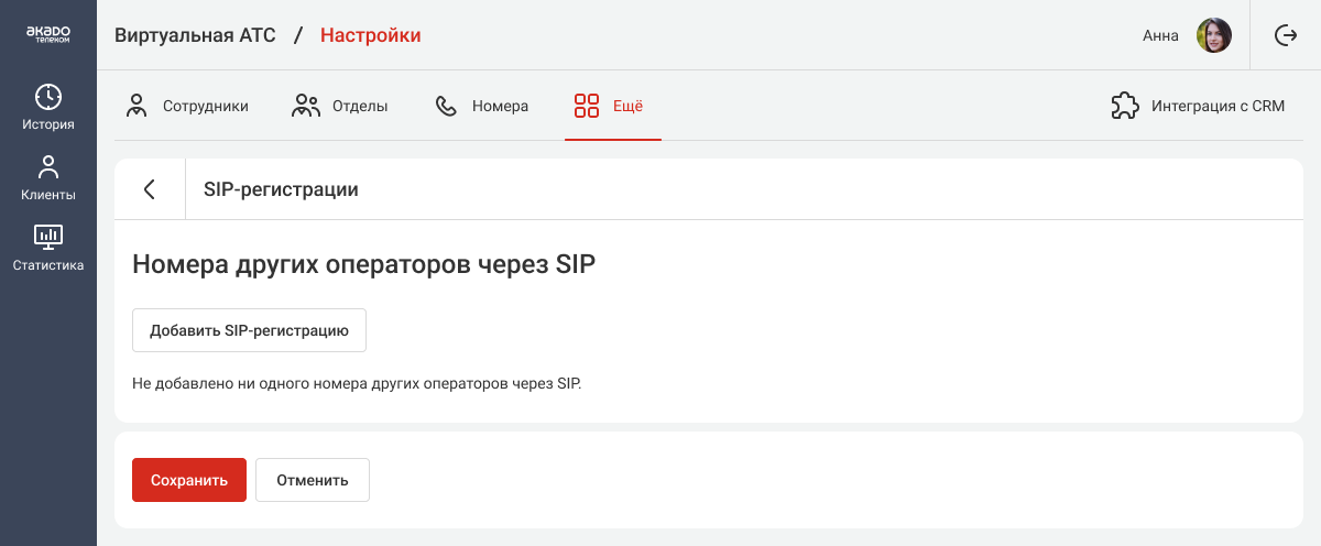 Также в настройках номера будет раздел «При входящих звонках А-номер ожидается в формате E.164». Это техническая информация и, чаще всего, сюда вносить изменения не требуется. Если ваш оператор связи работает не по стандарту E.164, здесь вы сможете настроить преобразование.