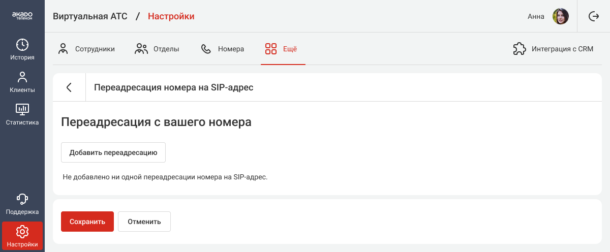1. В разделе «Еще» перейдите в «Переадресация номера на SIP-адрес» и в разделе нажмите «Добавить переадресацию».