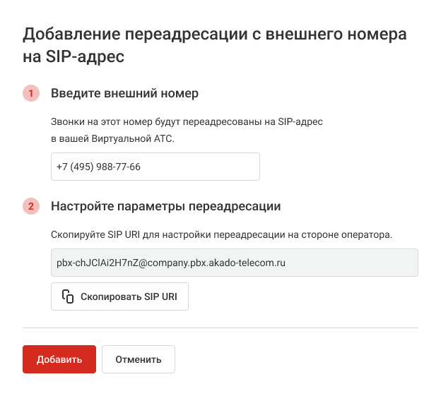 2. Введите номер телефона и скопируйте полученный SIP URI.